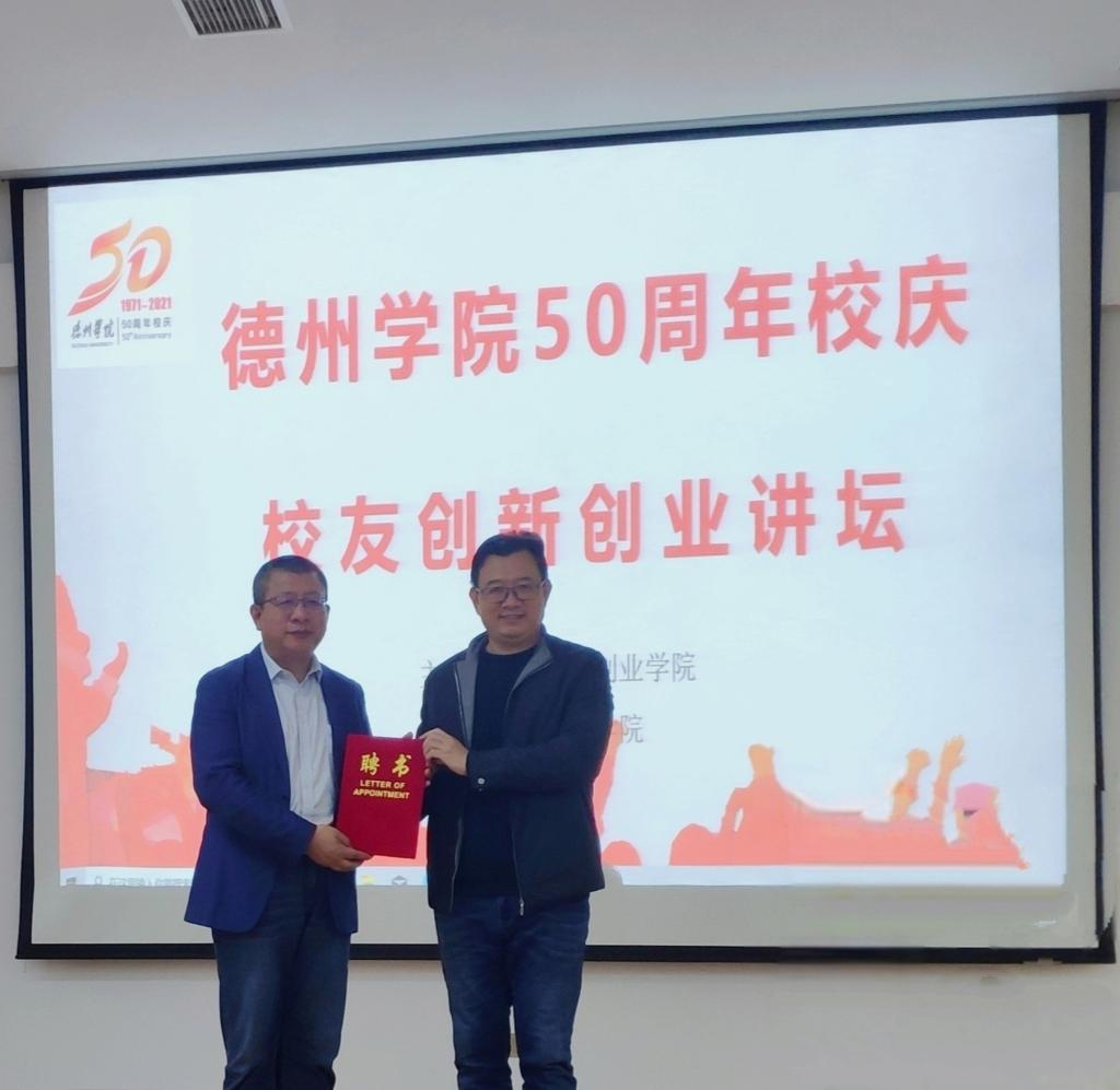 活动伊始,体育学院负责人为杨兴志先生颁发了德州学院创新创业导师聘书,杨兴志先生回顾了在母校学习生活的经历,表达了对学校、老师的感激之情,表示一定会尽自己的绵薄之力,为母校的发展贡献力量。随后杨兴志先生以“放飞梦想,迎青春绽放”为题,分享了自己几十年了的求职、就业、创业感悟,他忠告同学们要抓住在校学习的大好时光,努力学习专业知识,争取到更高层次学校提升自己,要求同学们在进入就业岗位前,一定要掌握职场礼仪和职场技能,告诫大家必须要掌握创业的基本原则,谨慎创业,同时处理好创业和轻创业的管理,最后他勉励大家只要确立了目标,不要轻言放弃,只要你付出努力,你一定会成功!