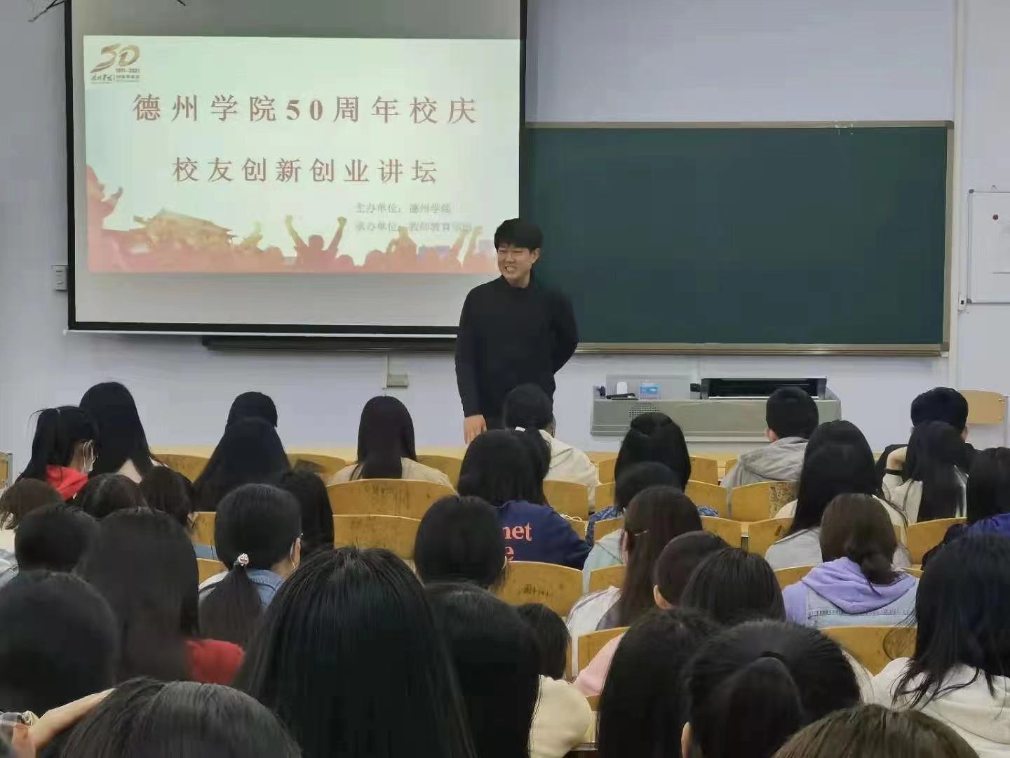 为提升大学生创新创业能力,激发大学生创业意识,宣传创业理念,培养创新创业精神,丰富大学生的创业知识。4月20日下午,由东北傲傲叫主办,教师教育学院承办的庆祝建校50周年创新创业讲坛在厚德楼128教室举行。本次论坛主讲嘉宾为教师教育学院12届校友、济南市大风车艺术教育培训机构艺术总监孙胜男,15届校友、青岛国乐琴行有限公司创始人薛宗翔,教师教育学院相关负责人,全院200余名师生参加了此次活动。