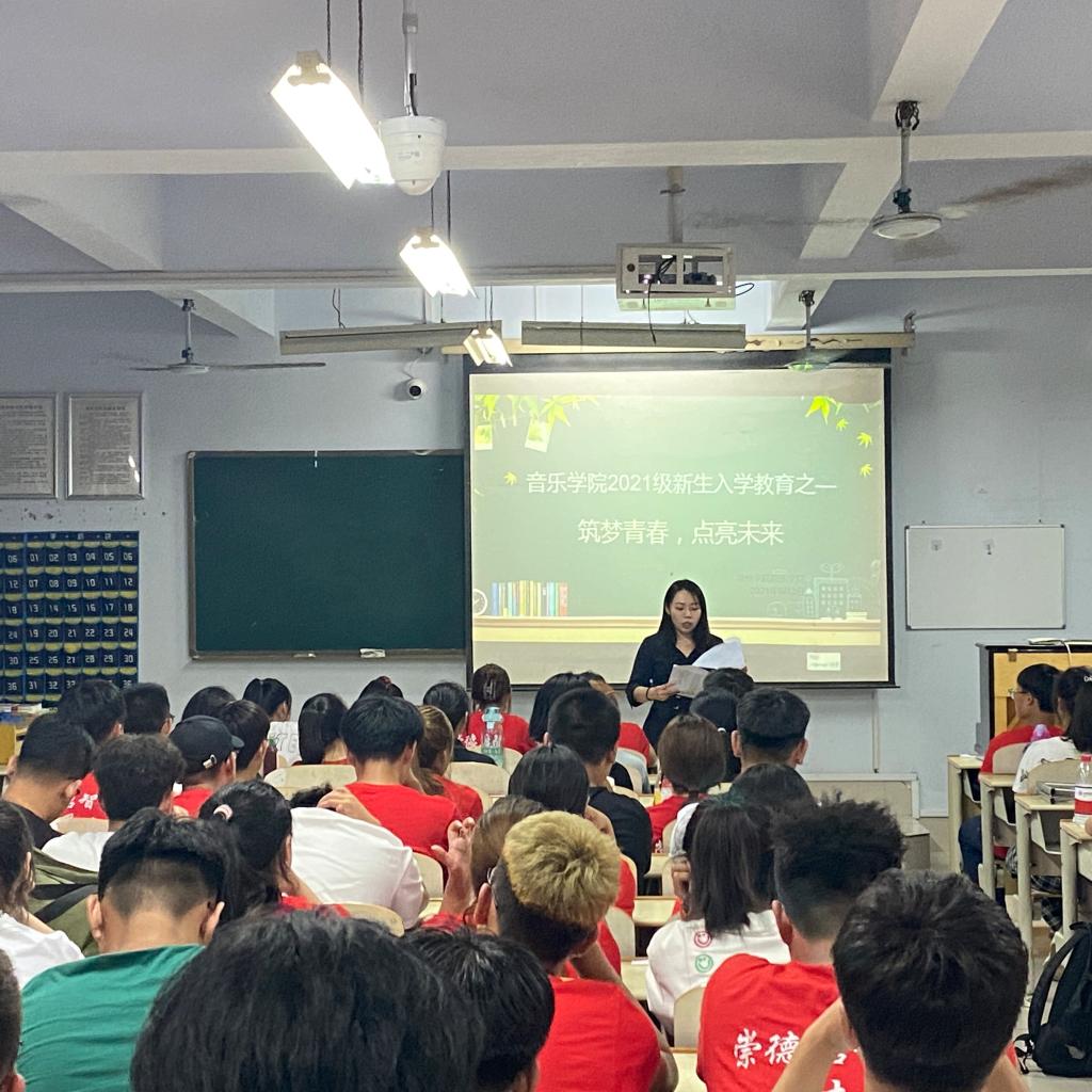 为贯彻落实学校“三位一体”的创新创业教育体系,持续推进大学生科技文化竞赛工作,做到“以赛促教、以赛促学、以赛促研、以赛促改”,更好地培养创新型应用型人才,音乐学院于2021级新生入学教育期间,召开 “筑梦青春,点亮未来”大学生科技文化竞赛讲座,2021级全体新生到场参加。