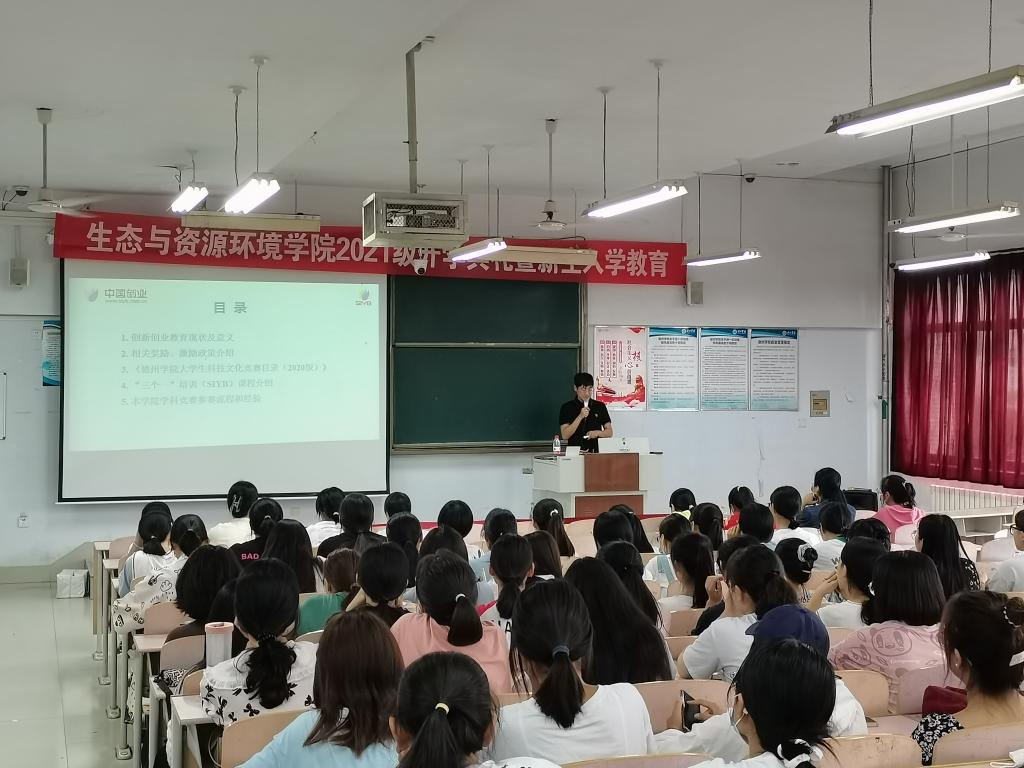 在国家“大众创业、万众创新”的背景下,为进一步做好新生创新创业宣传工作,培养和提高学生们的创新创业意识和参赛激情,生态与资源环境学院在求实楼312向2021级新生们进行了主题为“致青春、创梦想”的大学生科技文化竞赛宣讲活动。