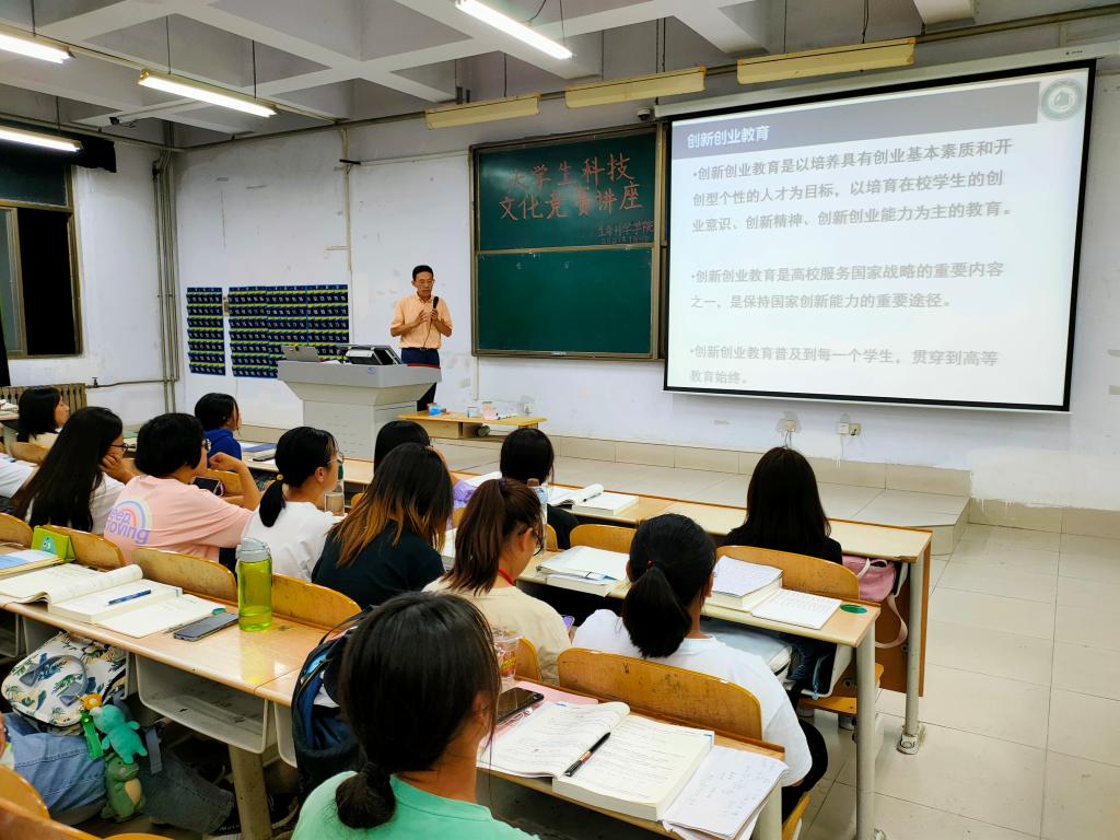 为培养2021级新生的创新意识和实践能力,提高他们对科创竞赛和科创项目的了解和参与积极性,9月16日,生命科学学院在求真楼0101教室举办了“创新创业,共创未来”竞赛科普讲座,全体2021级新生参加。