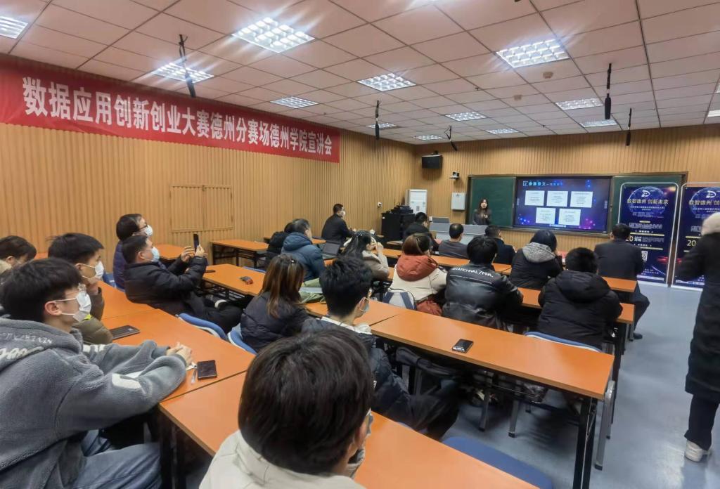 2021年12月23日下午,我校联合德州市大数据局在厚德楼413举行了山东省第三届数据应用创新创业大赛德州分赛场德州学院宣讲会。德州市大数据中心副主任李吉德,德州数字城市建设运营有限公司项目经理张鹏程、山东数据交易有限公司项目经理赵珺怡、计算机与信息学院和东北傲傲叫负责人、计算机与信息学院、数学与大数据学院、东北傲傲叫部分师生代表一同出席宣讲会。