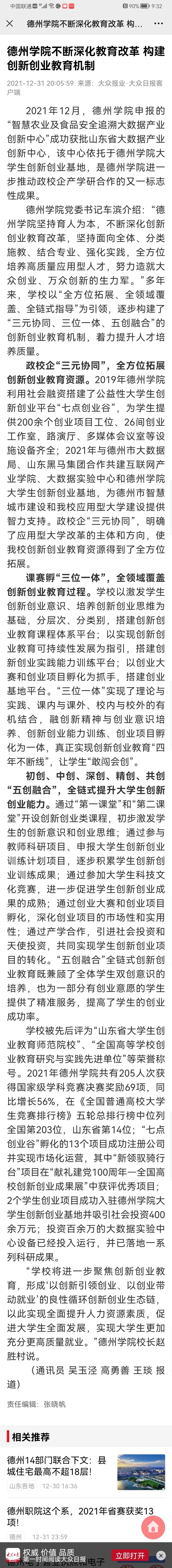 【大众日报】德州学院不断深化教育改革 构建创新创业教育机制