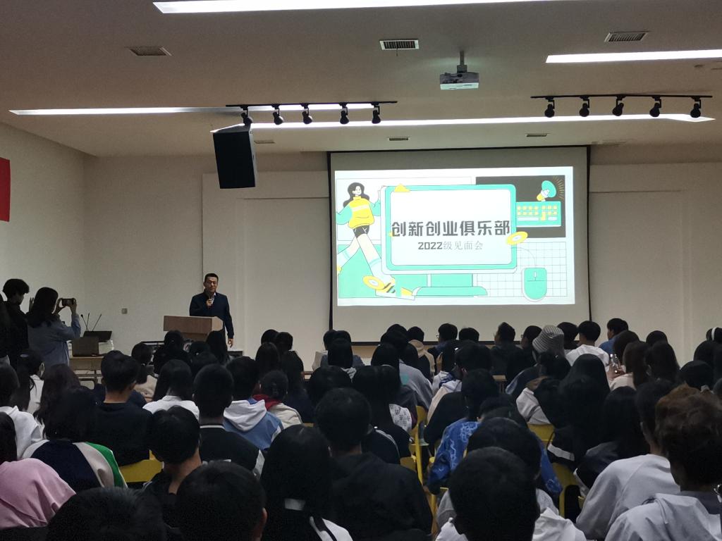 第二,双创学院负责老师介绍了七点创业谷的发展史和双创俱乐部的历程,创业谷是集学校优质资源与师资建设成的创业平台,并表达了对大一新生的期许。