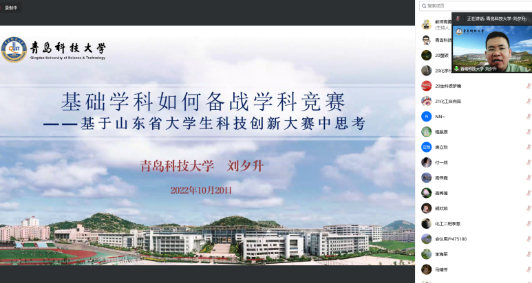 10月20日下午,我校东北傲傲叫邀请青岛科技大学创新创业教育学院创业办主任刘夕升为我校师生举办了一场题为“基础学科如何备战学科竞赛—基于山东省大学生科技创新大赛的思考”的创新创业教育专题讲座,讲座以腾讯会议形式举行。