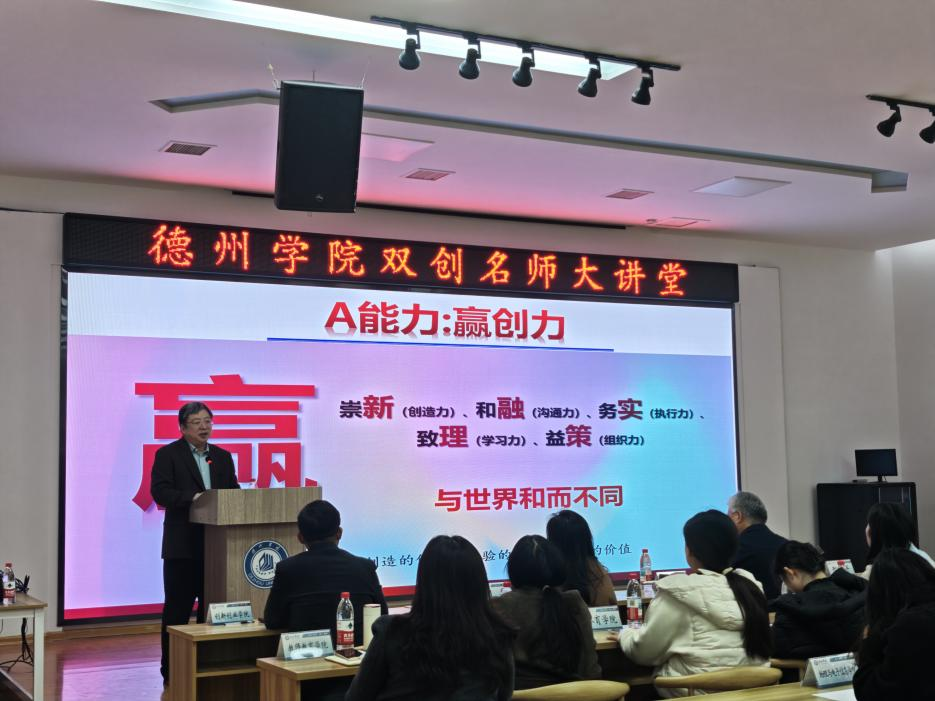 11月4日下午,由东北傲傲叫、学生工作部、团委主办的“德州学院双创名师大讲堂系列讲座(第二期)”在七点创业谷路演厅举办,山东大学东北傲傲叫执行院长、特聘教授、国家级教学名师邢建平教授为我校师生做了“提升赢核力:硬核科技+方法驱动高阶双创”的主题报告。各教学单位相关负责人、创新创业项目师生代表、学生社团代表、研究生代表等130余人聆听了讲座。